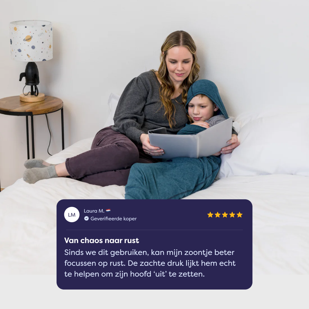Veel ouders van kinderen met ADHD of prikkelgevoeligheid kiezen voor de slaapcocon. De lichte druk helpt om prikkels te verminderen en een gevoel van rust en geborgenheid te geven, niet alleen bij bedtijd maar ook gewoon thuis op de bank of tijdens een rustig moment.